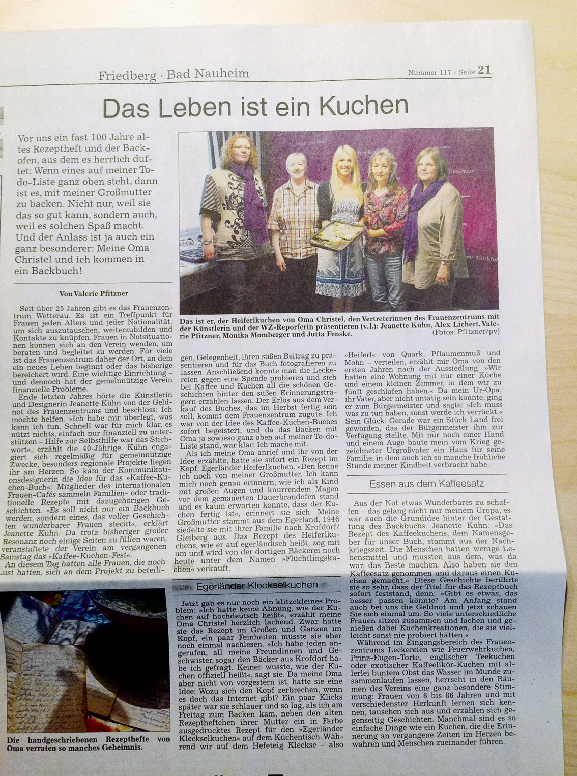 „Das Kaffeekuchen-Backbuch-Fest“ Im FZW am 17.05.2014 Am Samstag den 17.05.2014 war es endlich soweit: Die letzte Möglichkeit seinen Kuchen im Buch zu präsentieren. Der Andrang war entsprechend gross, die Vorläufer Projekte und PR griffen perfekt wie Zahnräder ineinander. Die Presse war so begeistert von dem Projekt, das sich innerhalb kürzester Zeit nach unserer Pressemitteilung die Wetterauer Zeitung ankündigte...als Teinehmer!